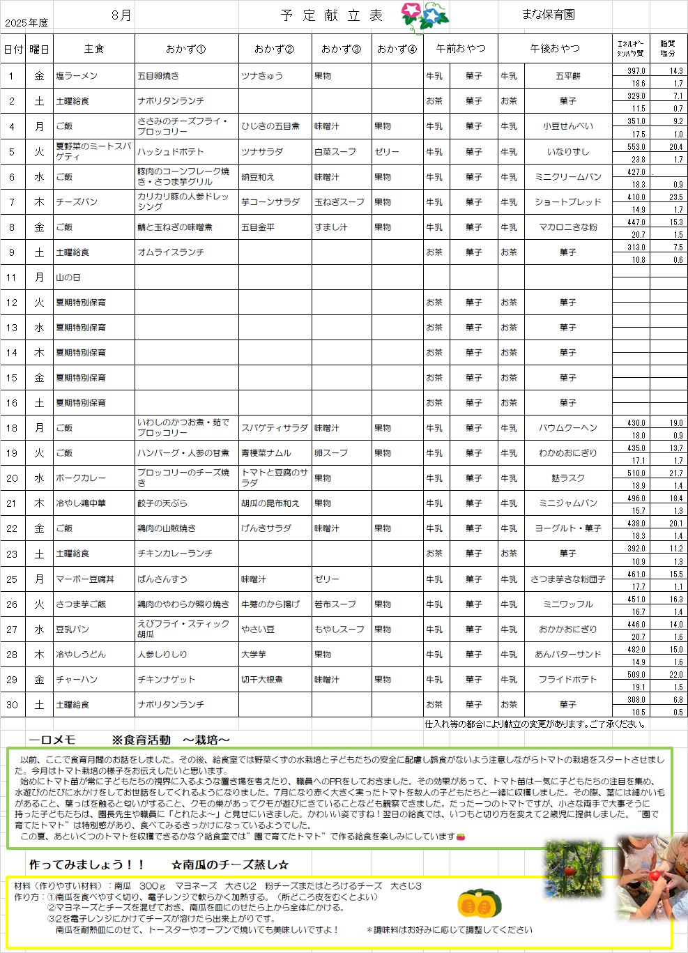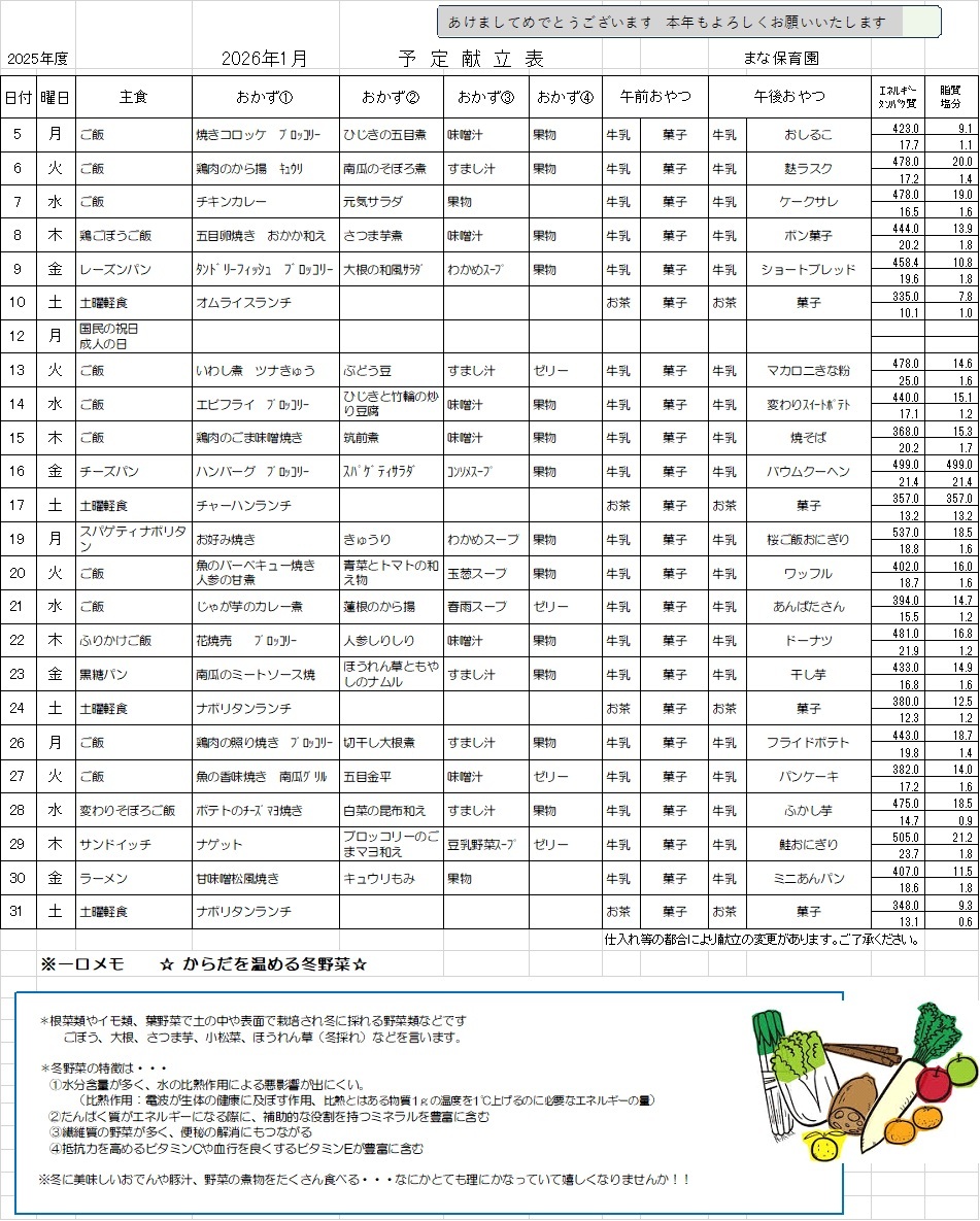 Mana給食だより①