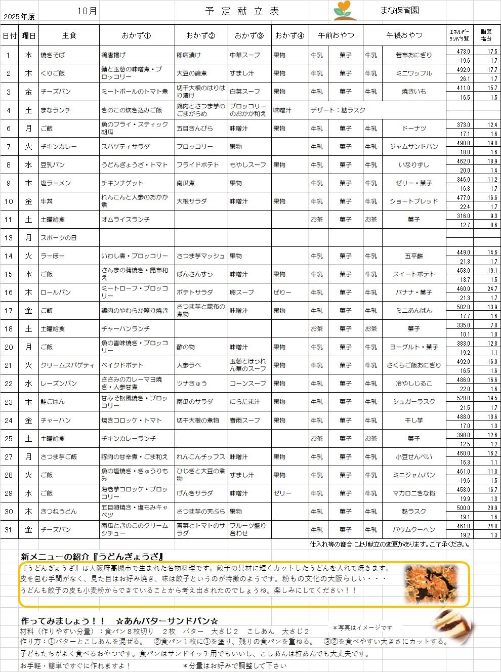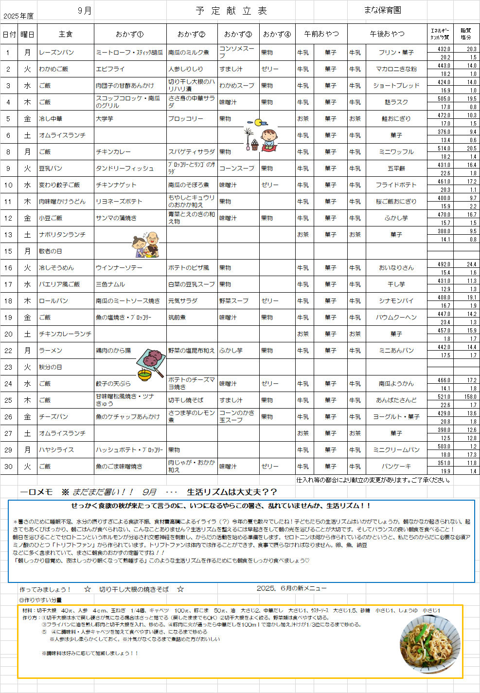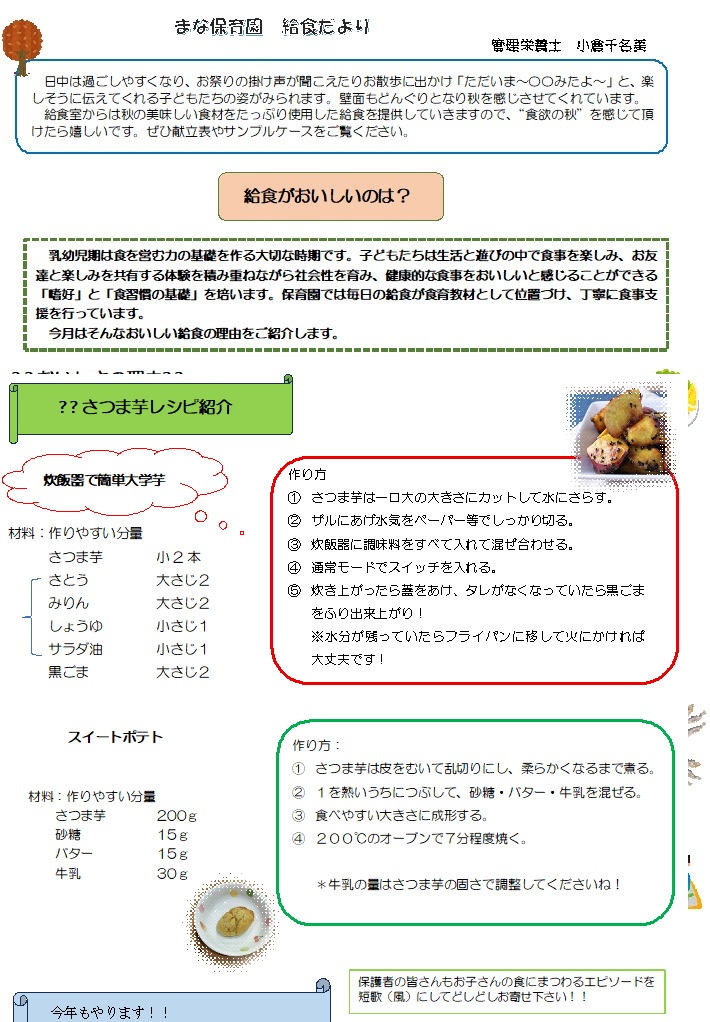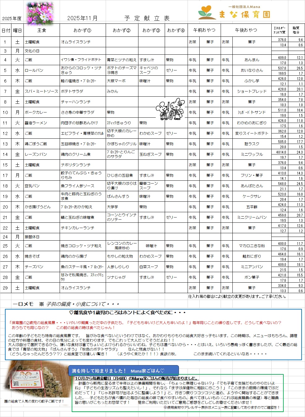 Mana給食だより11月①