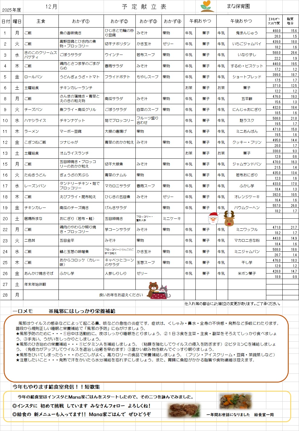 Mana給食だより11月②